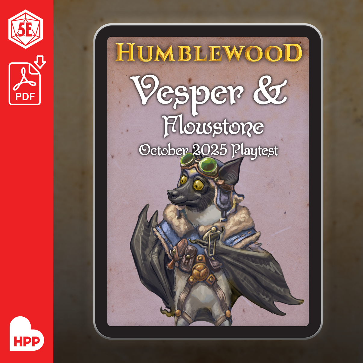 Discover a new Humblewood race, the bat-like Vesper and a new location: Flowstone! Includes: A new playable species and their lore Adventure hooks NPCs Magic Items ...and more! Writing &...