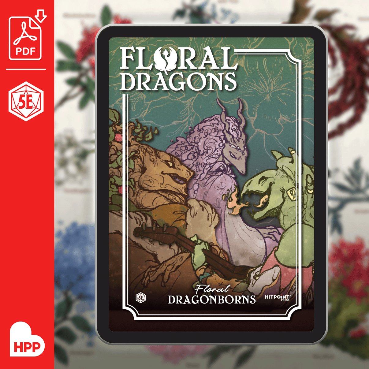Play a floral dragonborn race in 5e! With new lore, statistics, and ancestries infused with the magic of floral dragons, you’ll be able to play as a floral dragonborn and add them to your stories.