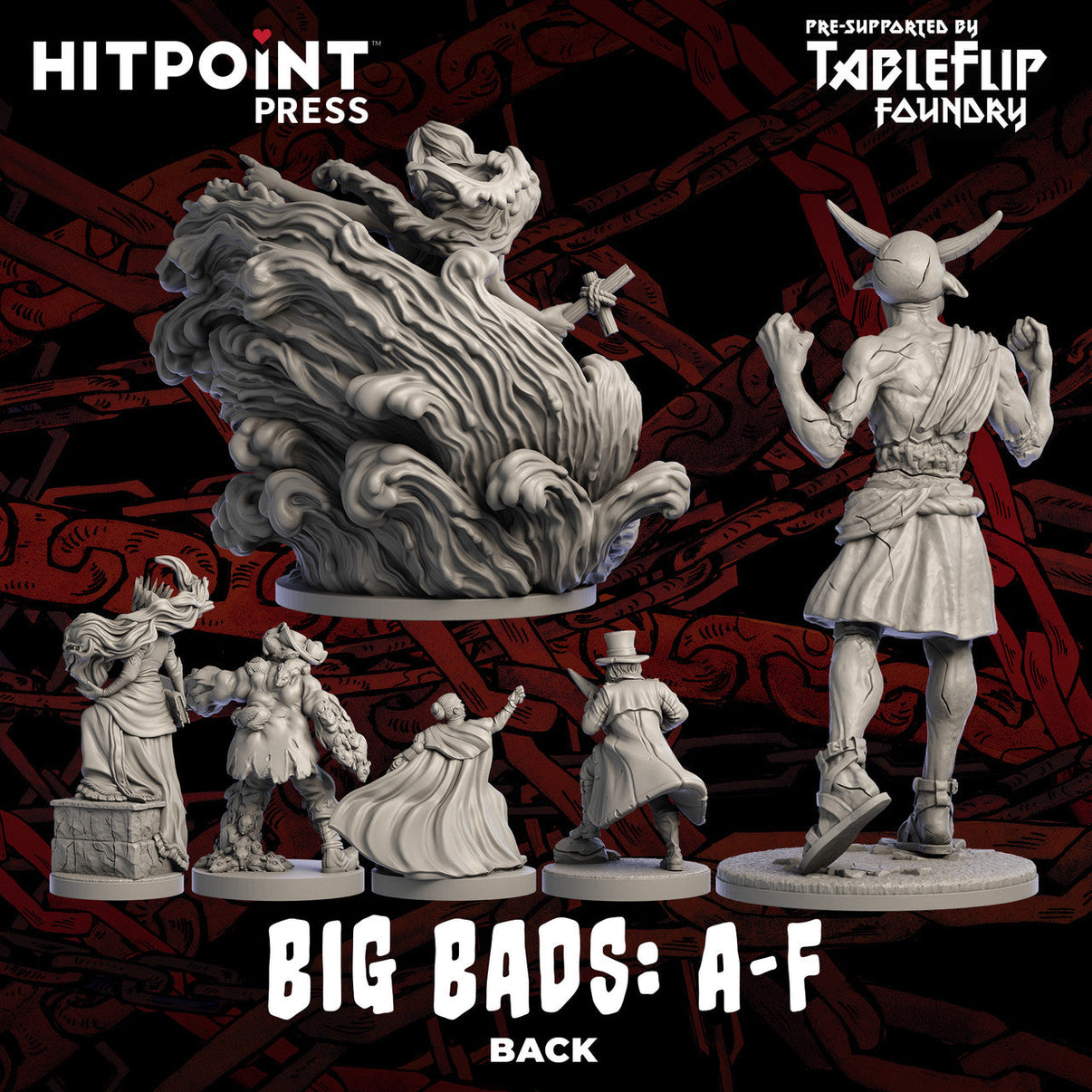 A bundle of STLs! Includes the STL files for Big Bads A to F, the brand new Big Bads featured in the Big Book of Big Bads!