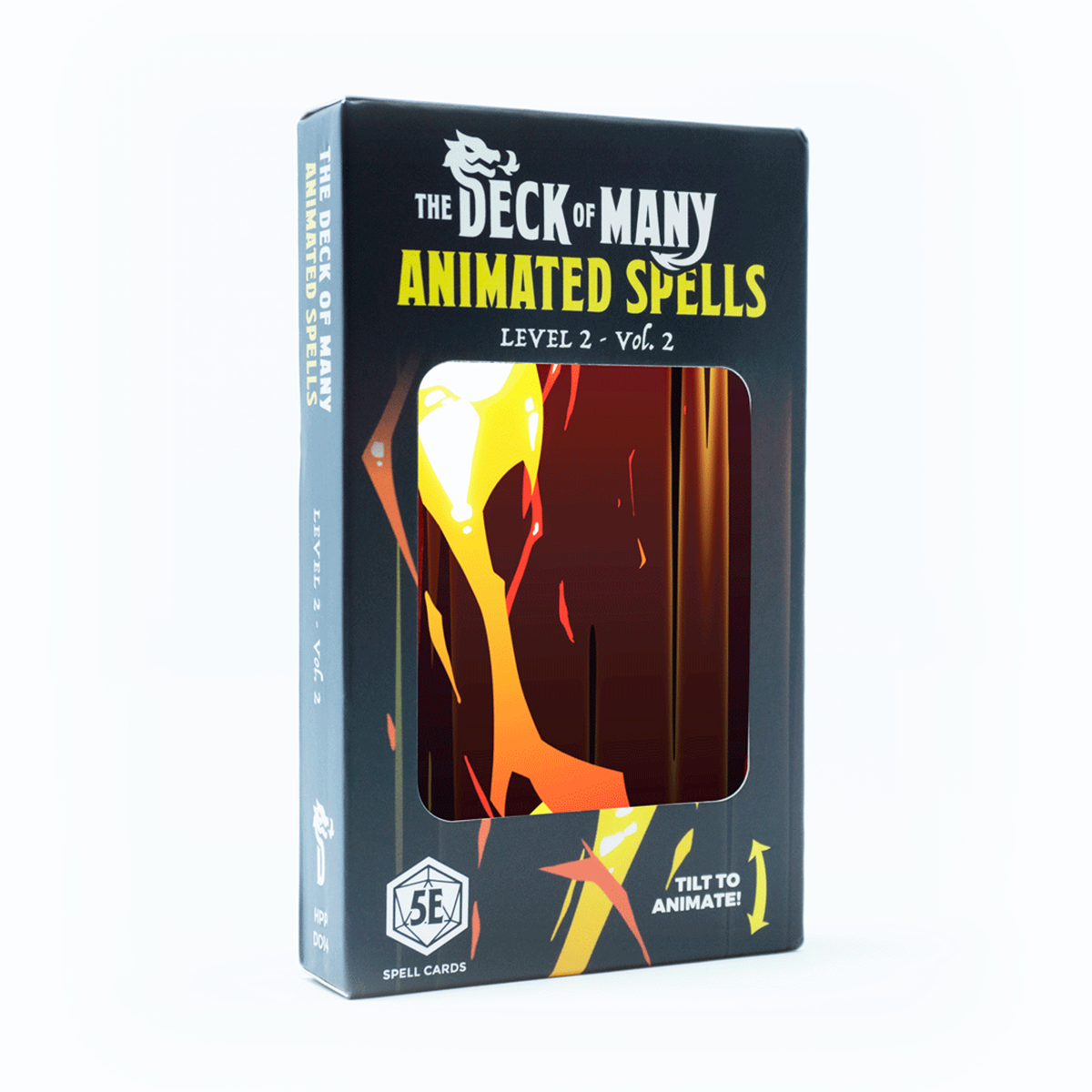 Animated Spells is a tool used to assist Game Masters and players alike in their 5e role-playing campaigns, freeing them from traditional reference books and allowing them to only bring the spells they need. Each card features an original 8 frame looping animation on the front and easy to reference information on the back.