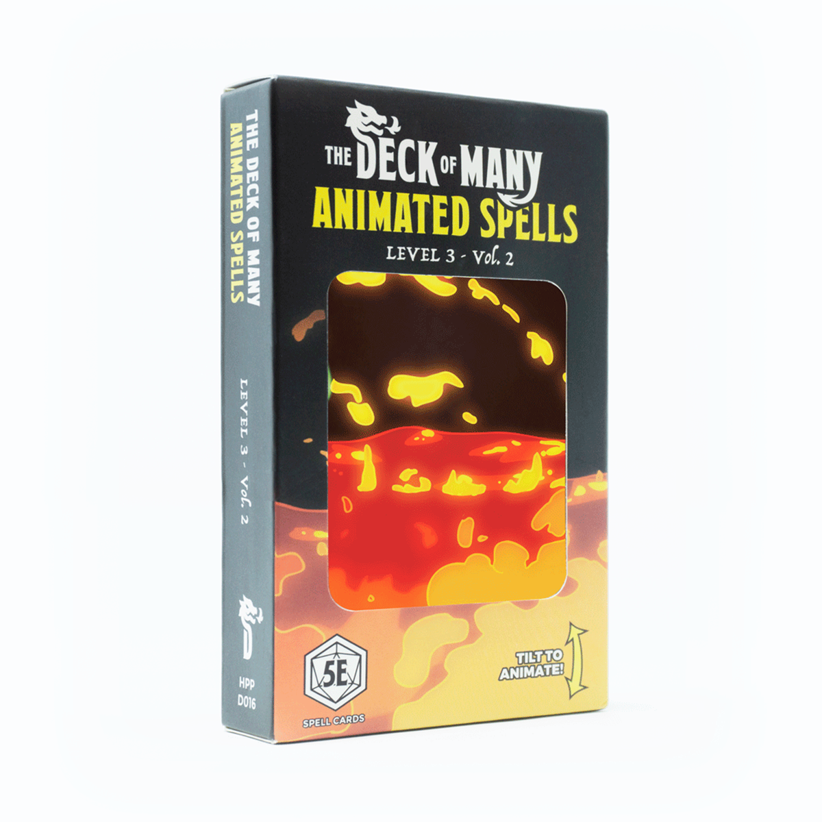 Animated Spells is a tool used to assist Game Masters and players alike in their 5e role-playing campaigns, freeing them from traditional reference books and allowing them to only bring the spells they need. Each card features an original 8 frame looping animation on the front and easy to reference information on the back.