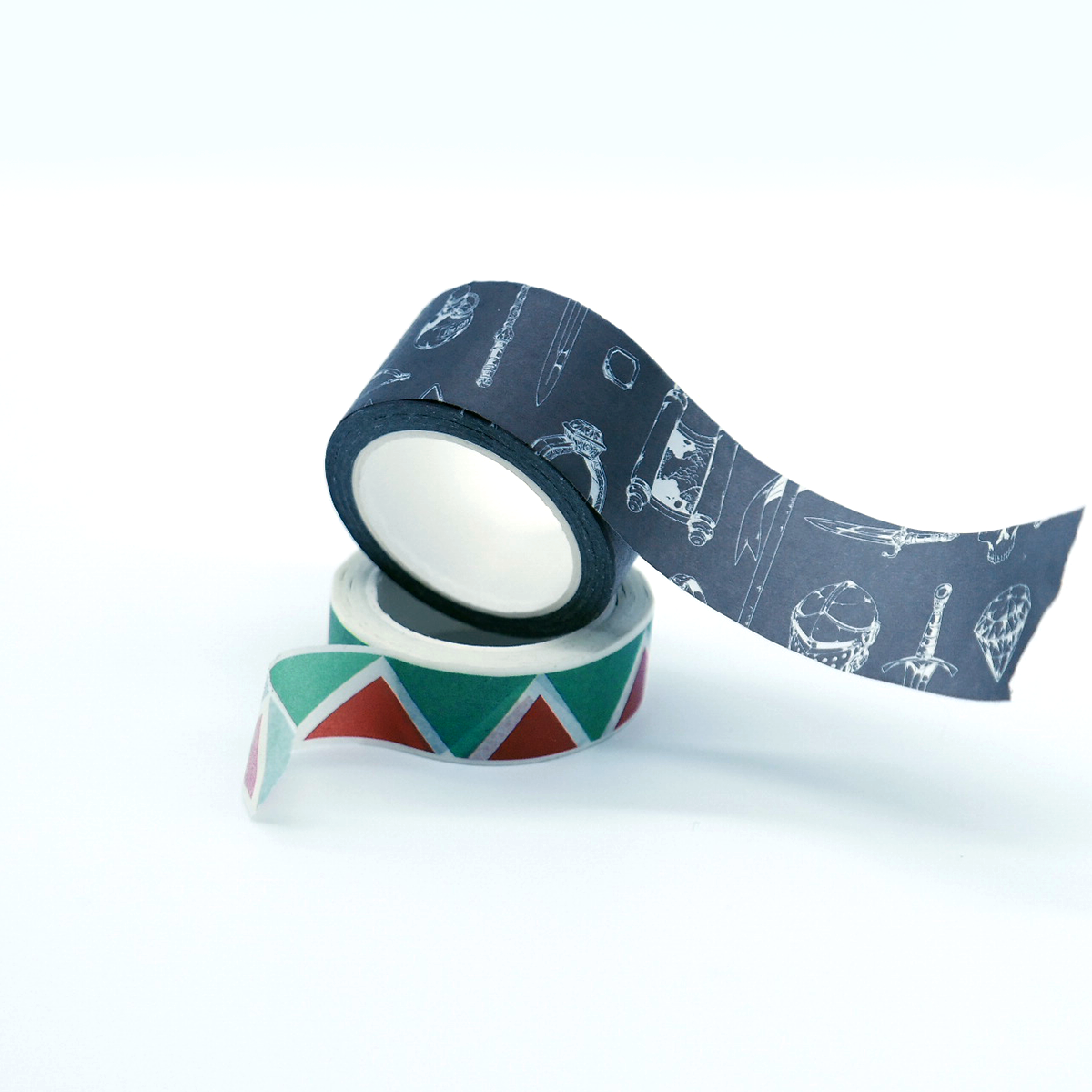 Comes in a set of two:One red and teal triangle patternOne in a repeating equipment pattern